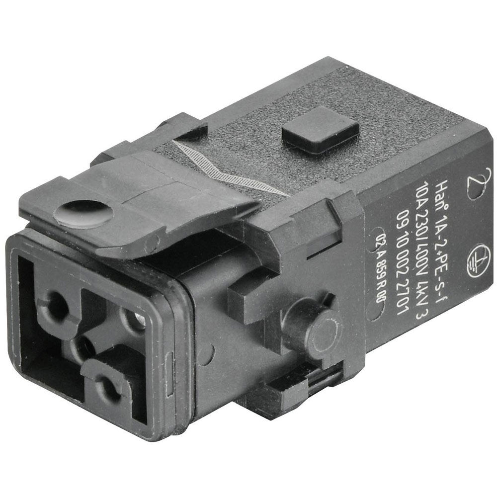 Harting manufactures the Han 1A-2+PE-S-f latch, a ...
