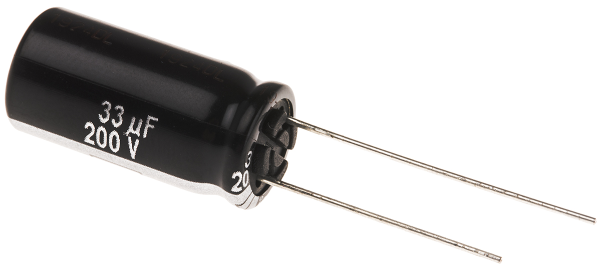 Kondensator 33μF 200V dc Radialny, Otwór przelotowy Panasonic roztaw: 5mm 10 (Dia.) x 20mm