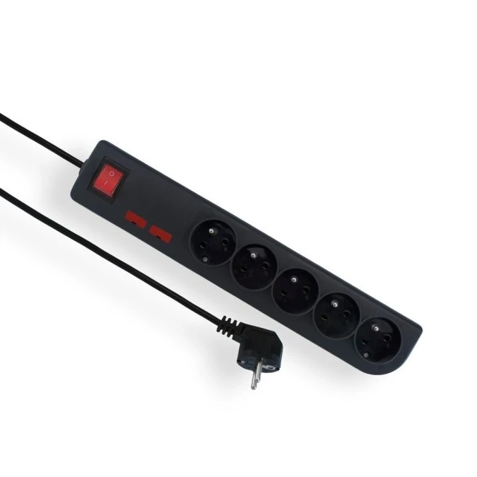 2. Przedłużacz przeciwprzepięciowy 6-gniazd z/u 5m czarny PSF2-605-2 80.43