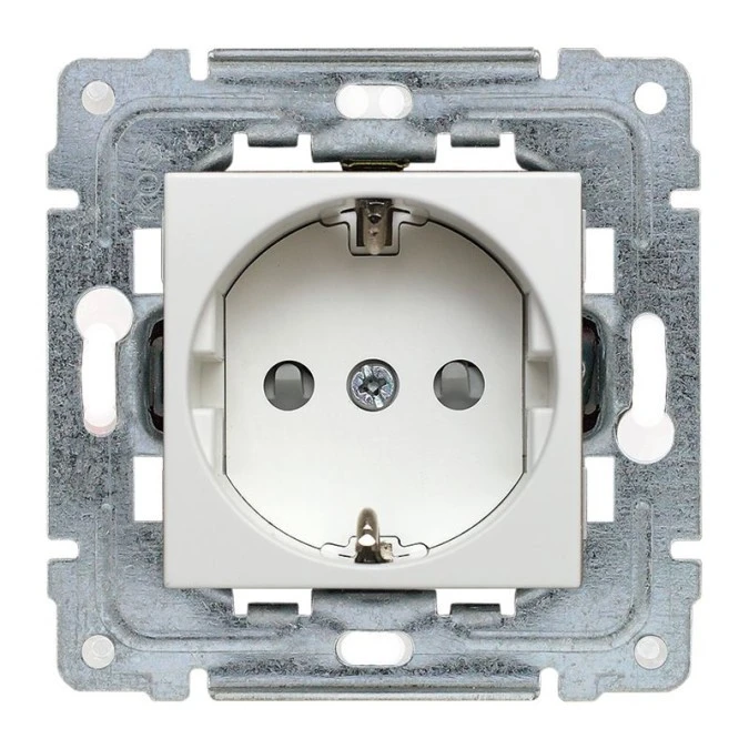 DANTE Gniazdo pojedyncze z uziemieniem z przesłoną torów prądowych bez ramki śnieżna biel 450234 KOS