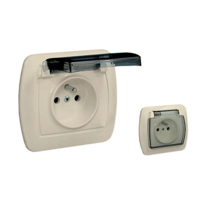 KARO Gniazdo bryzgoszczelne z/u Schuko IP44 klapka przezroczysta ecru perłowy GPH-1SS/m/42/d