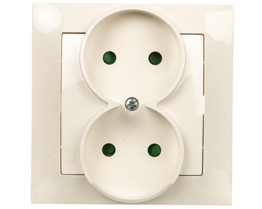 IMPRESJA Gniazdo podwójne bez uziemienia z przesłonami torów prądowych kompletne z ramką ecru GP-2YP/27 OSPEL