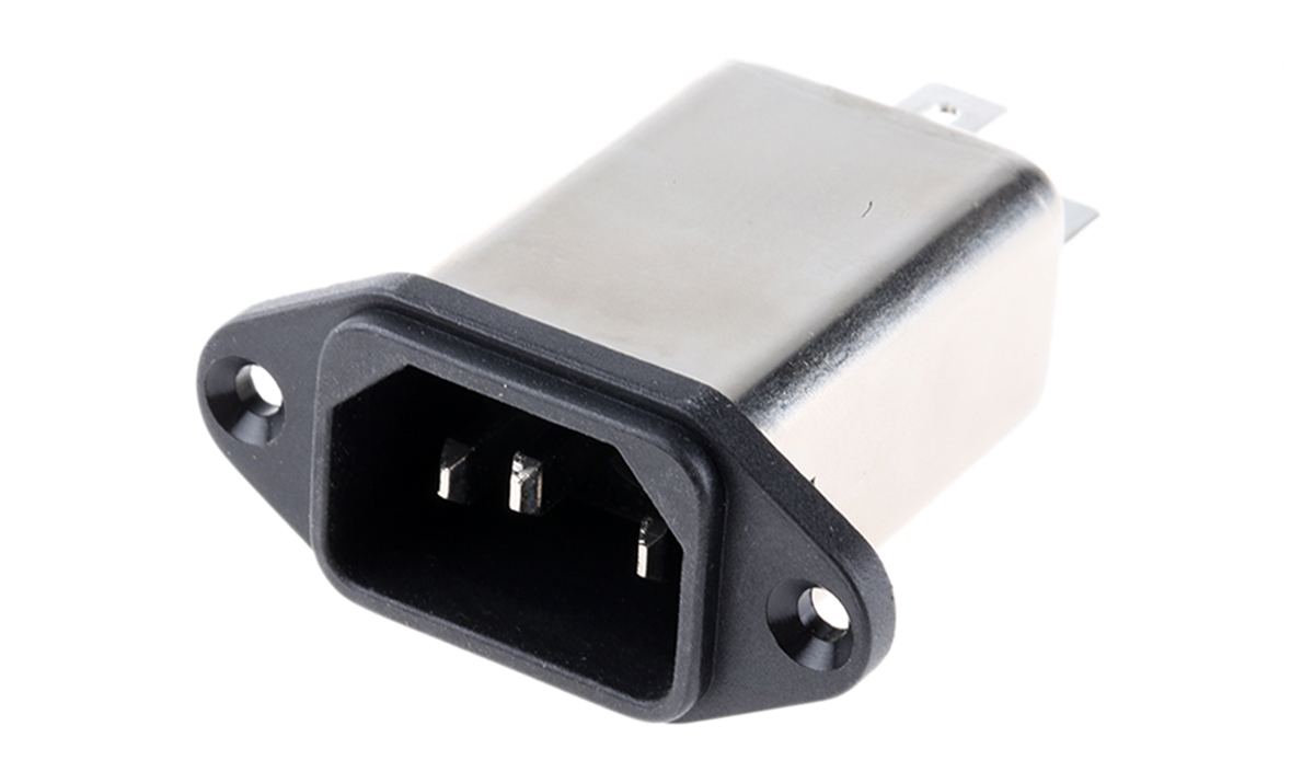 Wtyk; zasilające AC; IEC C14 IBM; IEC C14-TYP1; proste; na panel; przykręcane; moduł z filtrem; gniazdo bezpiecznika; 10A; 250V;
