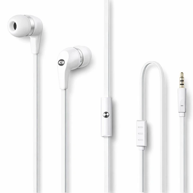 Qoltec Słuchawki dokanałowe z mikrofonem Białe Płaski kabel 1.2m