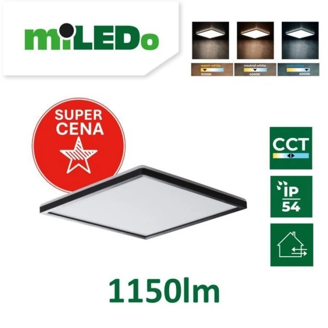 15. Plafoniera LED AZPO LED 12,3WCCT-L-B IP54 kwadratowy 1150lm 3000/4000/6000K barwa neutralna/ciepła/zimna czarny 31531 54.97