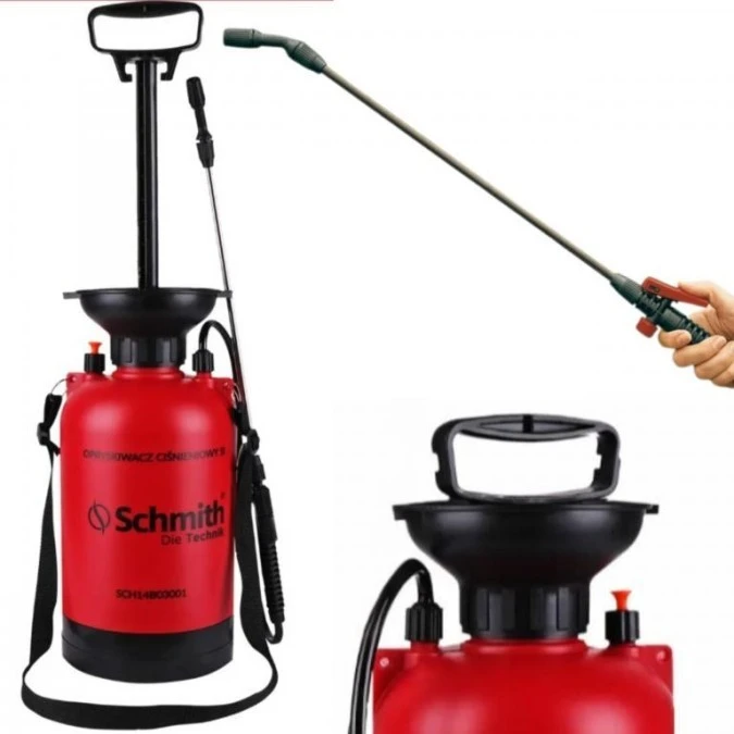 Opryskiwacz ciśnieniowy z lancą 5L ogrodowy ręczny z pasem na ramię Schmith