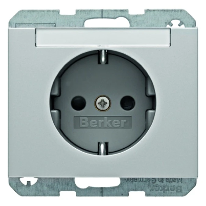 13. BERKER K.5 Gniazdo z uziemieniem schuko z samozamykającą się pokrywą polem opisowym i przesłonami aluminium 47527203 HAGER 126.15