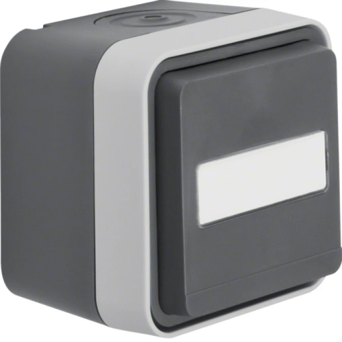 Berker W.1 Łącznik jednobiegunowy przyciskowy z podświetlanym p. opisowym, moduł IP55 szary 50413515