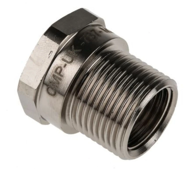 14. Przejściówka do przewodów elastycznych Thomas & Betts gwint M40 40mm Reduktor Mosiądz platerowany niklem Metaliczny 93.16
