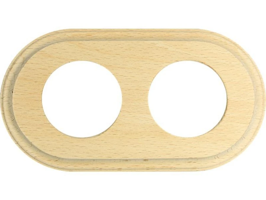 Ramka podwójna okrągła do łączników i gniazd Retro ceramic - jasne drewno