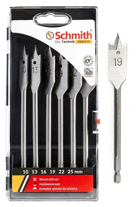 7. Wiertło do drewna łopatkowe piórowe wiertła 10-25mm zestaw 6szt. - Schmith 43.52