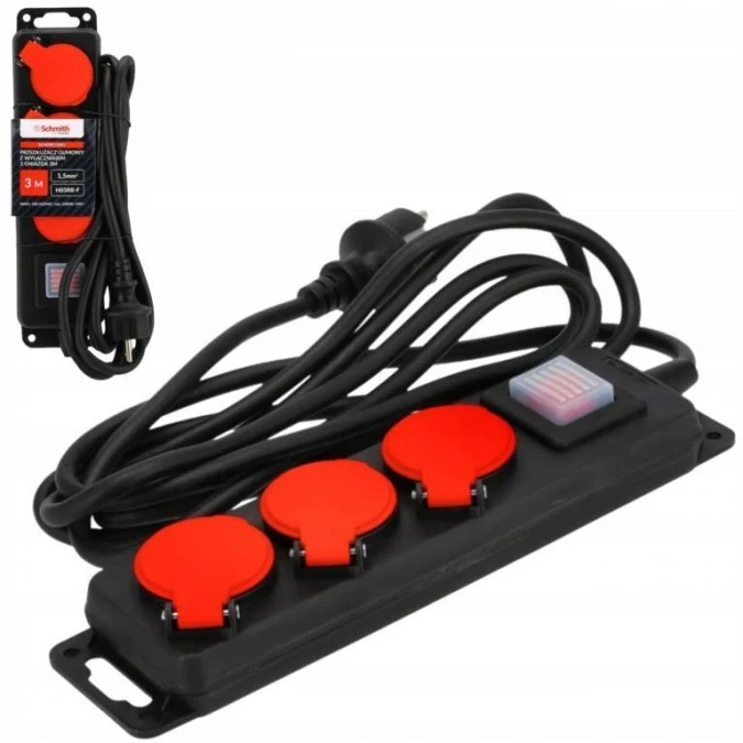 Przedłużacz gumowy listwa zasilająca z wyłącznikiem 3m 5 gniazd SCHMITH