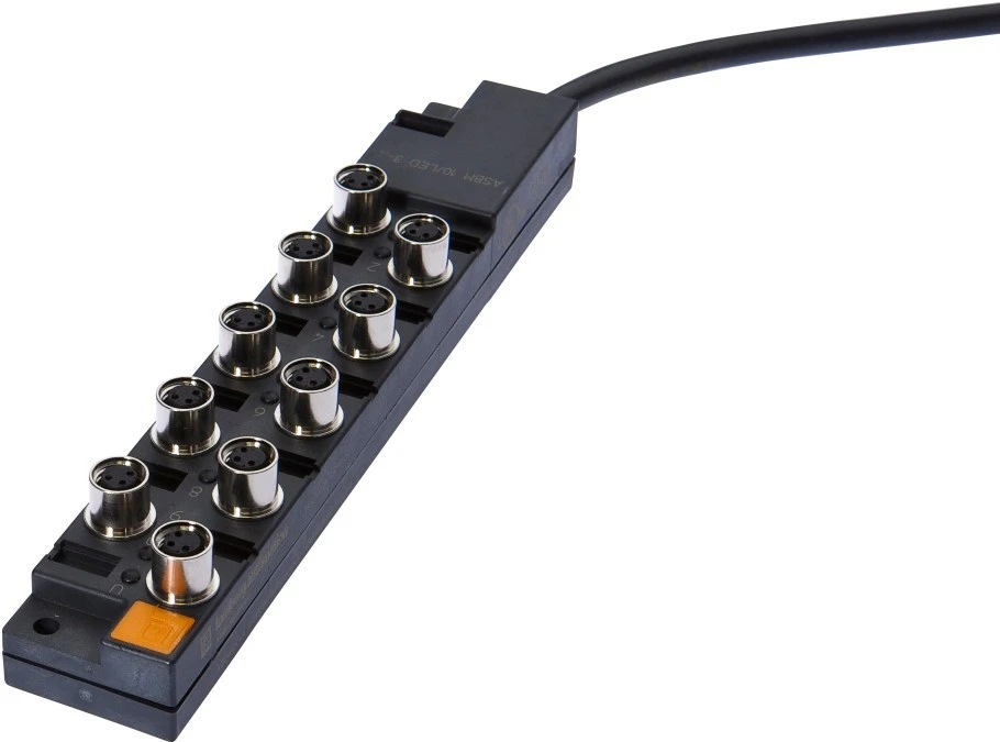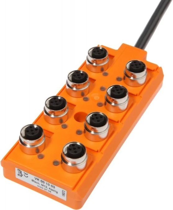 8. VK001003, rozdzielacz, 30x127x54mm, 10-30V DC, 8x M12, 4pin, IP67, TPU, Gniazdo czujnika/siłownika z przewodem uziemiającym, 12A 682.69
