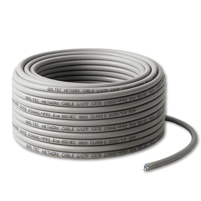 6. Qoltec Kabel Patchcord sieciowy skrętka UTP Miedziany Cu CAT6 High speed 1Gb/s LAN 100m szary 254.02