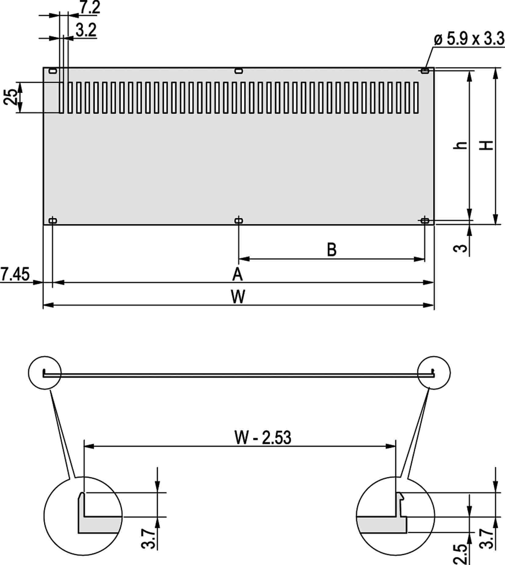 7. Płyta tylna Płyta tylna do szafy RACK nVent SCHROFF moduły stelażowe 3U szerokość 128.4mm skok poziomy 28KM 141.9 x 125.66