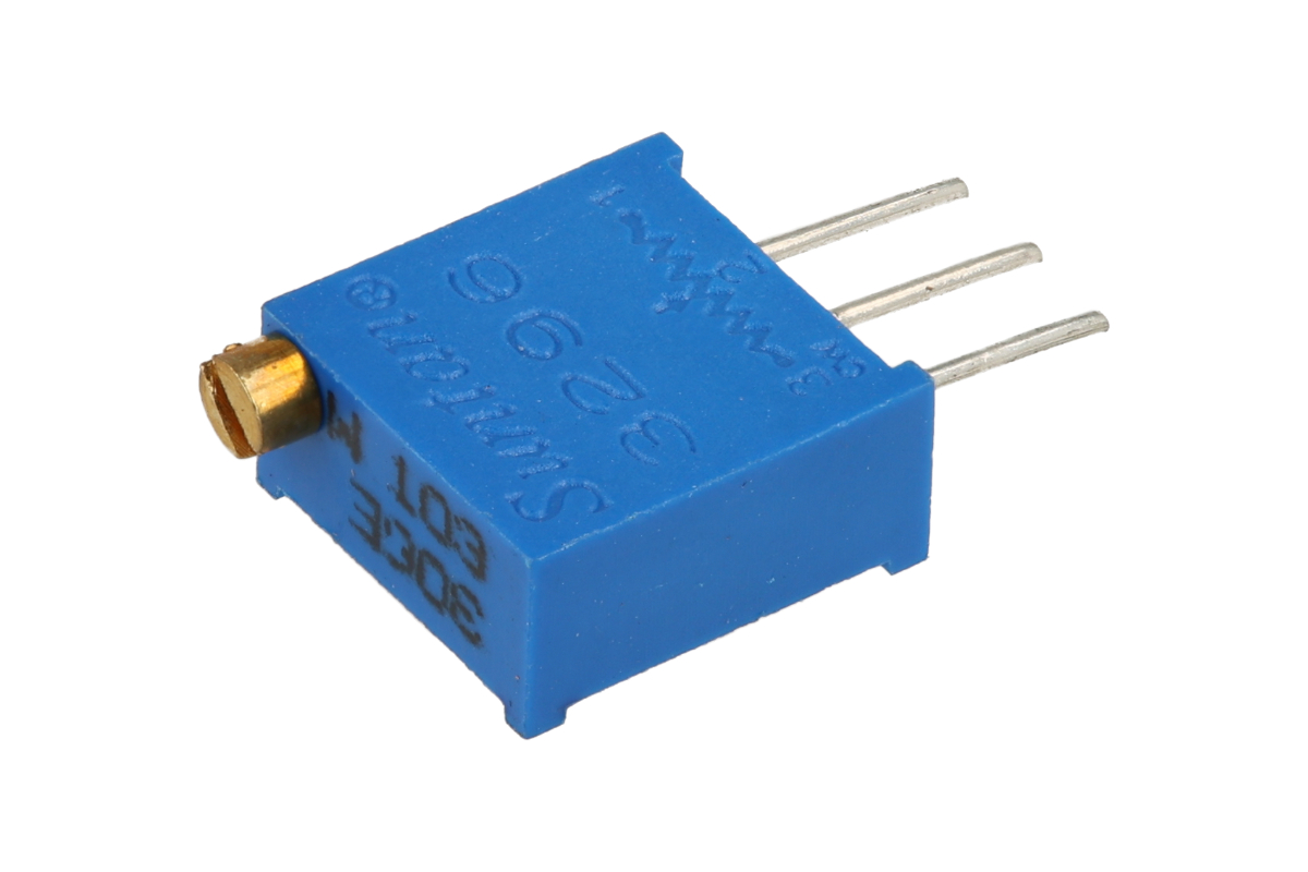 5. Potencjometr; montażowy; helitrim; stojący; wieloobrotowy; 3296X-103; 10kohm; liniowa; 10%; 0,5W; przewlekany (THT); cermetowy; 2.75