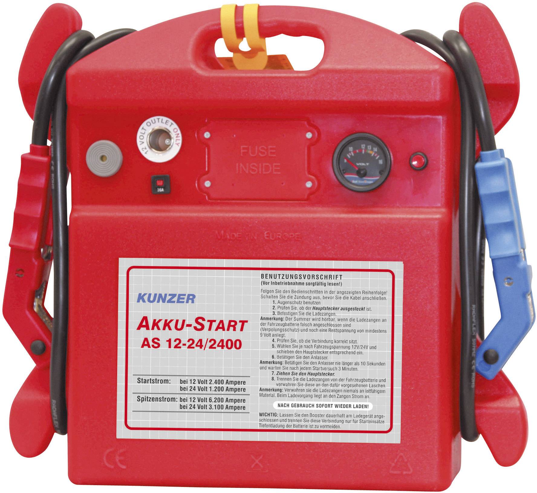 Kunzer Urządzenie rozruchowe AS 12-24/2400 Natężenie rozruchowe przy 12 V=2400 A Natężenie rozruchowe przy 24 V=1200 A