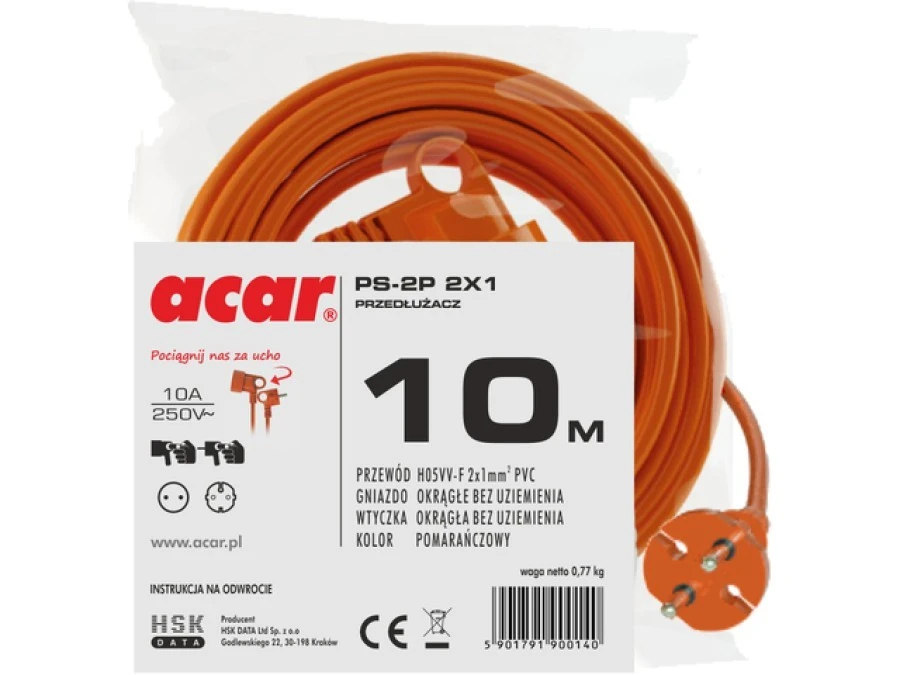 Przedłużacz ogrodowy 1-gniazdo b/u 10m /H05VV-F 2x1/ pomarańczowy