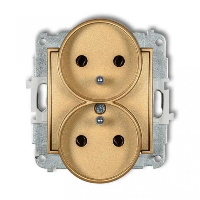 15. ICON Mechanizm gniazda podwójnego do ramki z uziemieniem 2x(2P+Z) (bez przesłon torów prądowych) złoty 29IGPR-2z 29.22