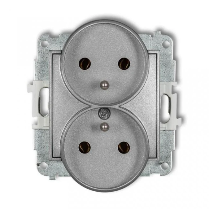 ICON Mechanizm gniazda podwójnego do ramki z uziemieniem 2x(2P+Z) (bez przesłon torów prądowych) srebrny metalik 7IGPR-2z