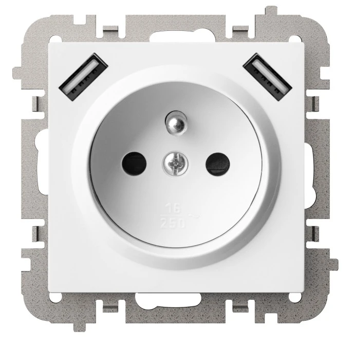 Vestra Gniazdo 2P+Z 2xUSB zasilające bez ramki podtynkowe IP20 biały 3888-10