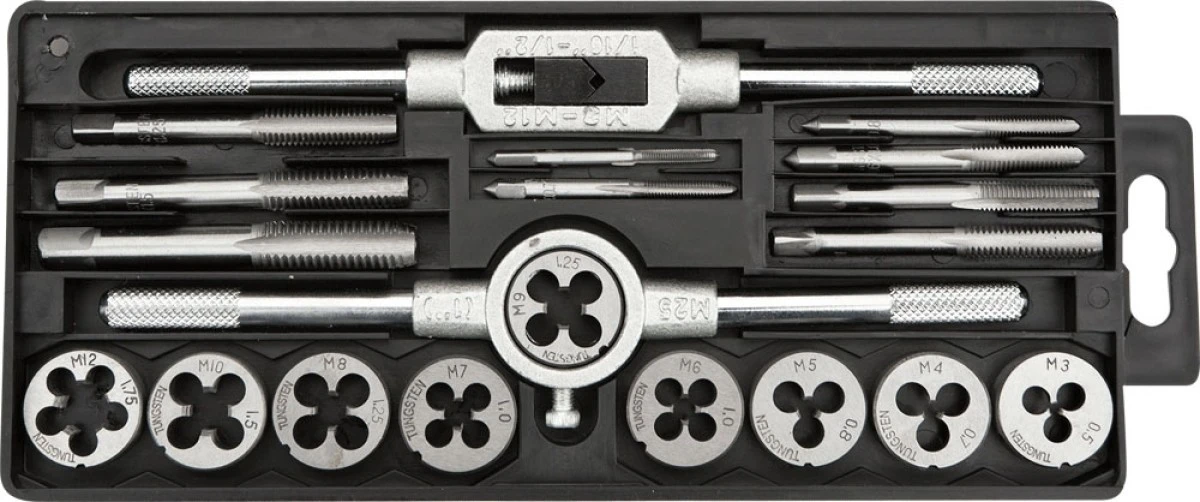 Narzynki i gwintowniki M3-M12 stal wolframowa (zestaw 20 szt.) 14A425