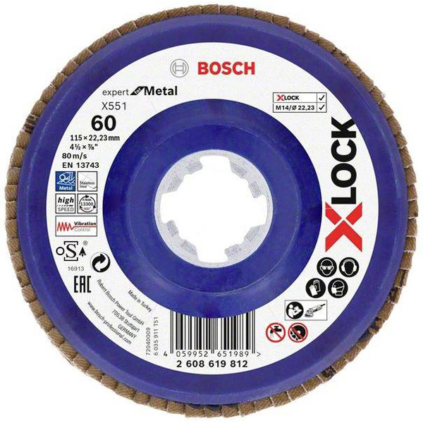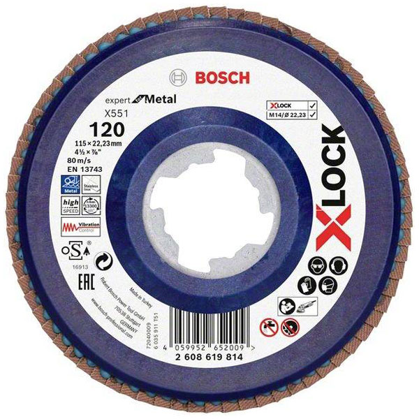 Bosch 2608619814 X551 Flap Disc 115mm Quick X-LOCK For Metalwork