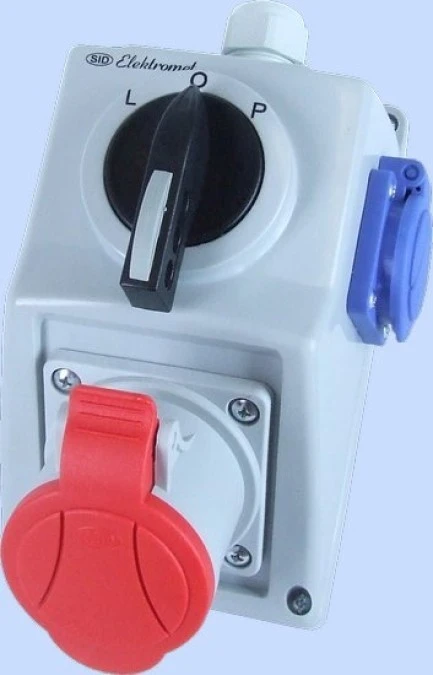 15. Zestaw gniazdo siłowe z wyłącznikiem L-0-P (lewo prawo) 1x32A/4p/400V 1x16A/3p/250V IP44 C32-48.1 974013 ELEKTROMET 243.01