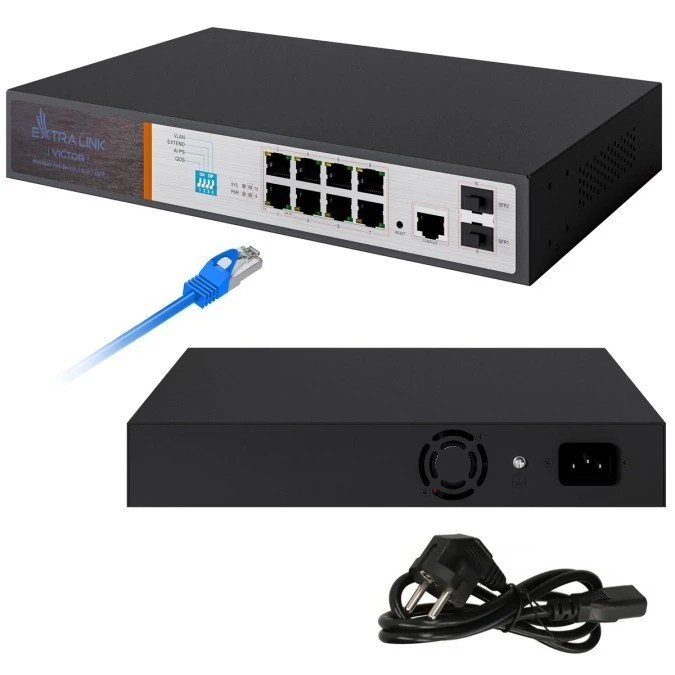 Switch PoE 8x Gigabit PoE/PoE+, 2x SFP, 1x Port Konsolowy, 150W, Zarządzalny Extralink VICTOR