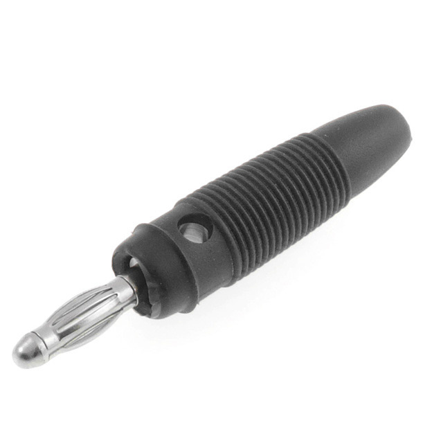 Wtyk izolowany 4mm lamelkowy z otworem 4mm, przykręcany, czarny