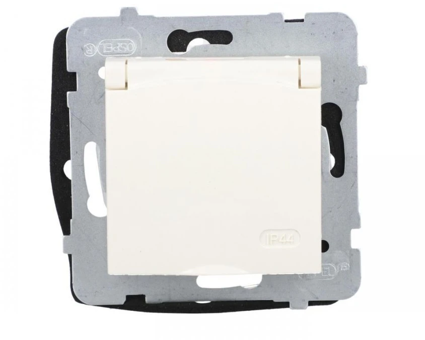ARIA Gniazdo bryzgoszczelne z/u IP44 wieczko kolor ecru GPH-1UZ/m/27/w