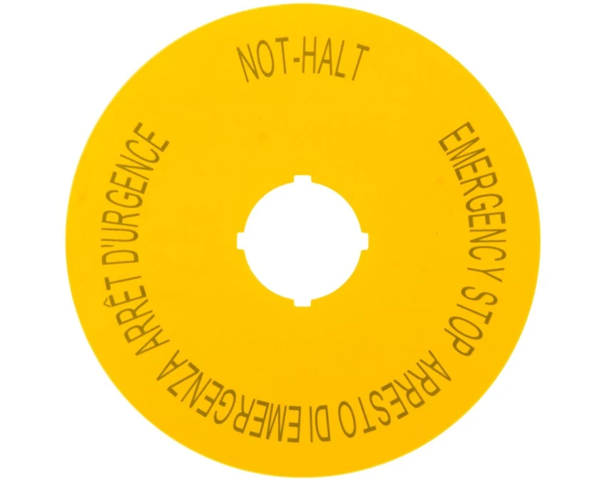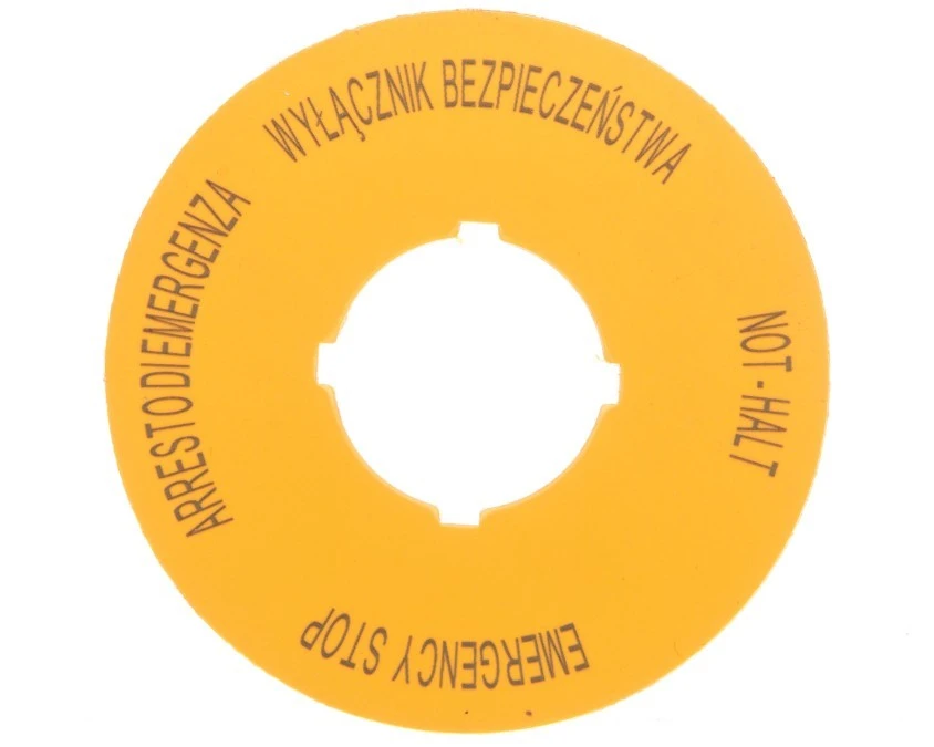 14. Tabliczka opisowa żółta okrągła EMERGENCY STOP (4 języki) M22-XBK15 167638 51.00
