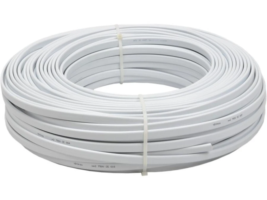 4. Przewód prądowy H03VVH2-F / OMYp 300V 2x1 płaski biały linka Elektrokabel 25m 55.65