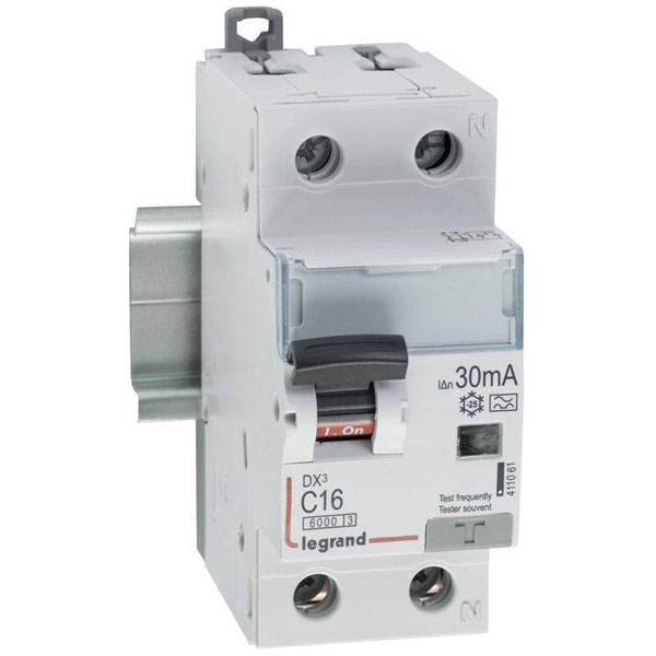 Legrand 411061 DX3 RCBO 16A 230V AC Type A C Curve 6kA ICN Top Hat Rail