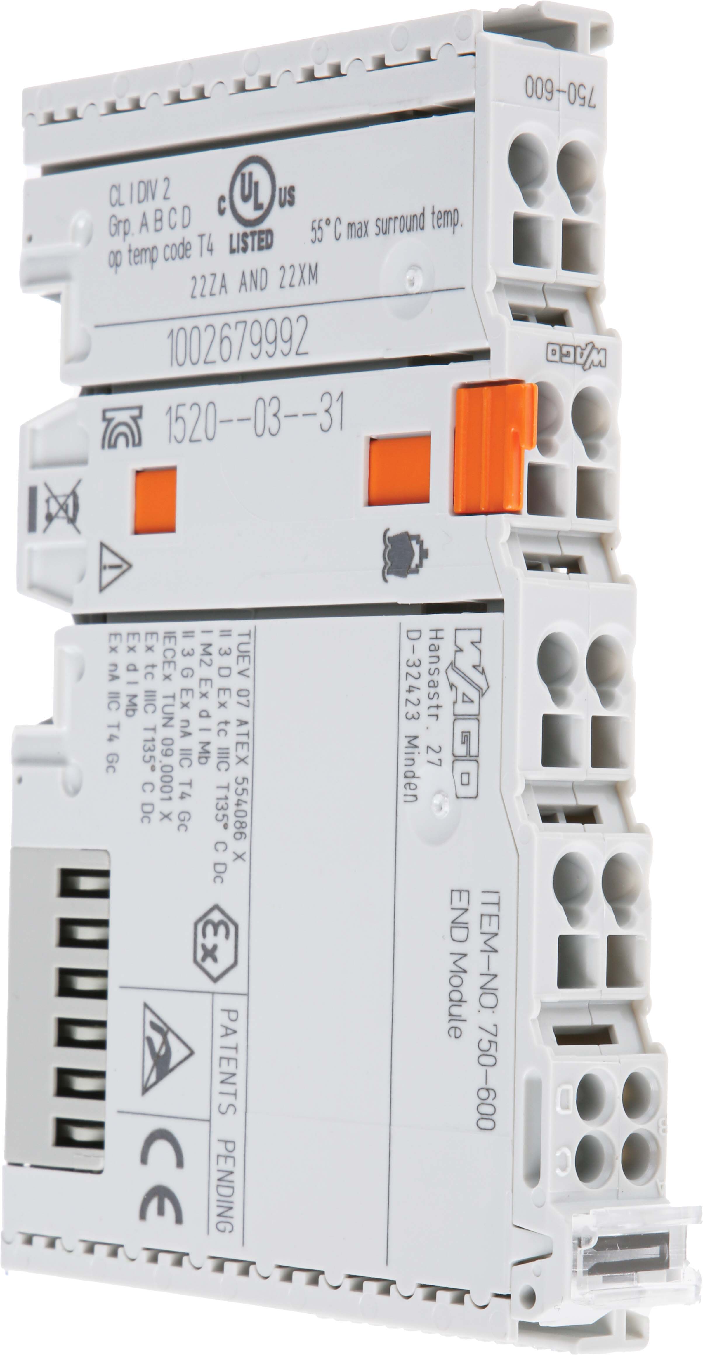 Moduł PLC We/Wy WAGO Moduł PLC We/Wy 750 System wejścia/wyjścia 750/753 750600 100 x 12 x 64 mm Zastosowania morskie
