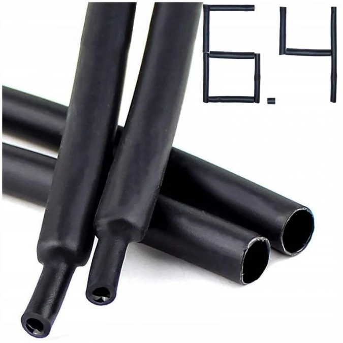1M RURKA KOSZULKA TERMOKURCZLIWA z KLEJEM GRUBA CZARNA 6mm 6.4/2.2 mm