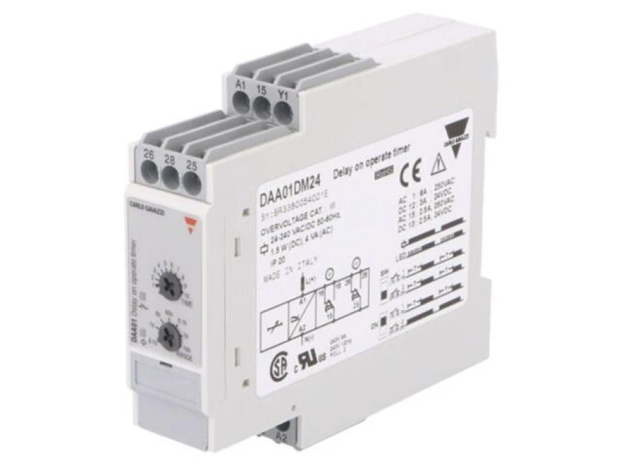 1. DAA01DM24 Przekaźnik czasowy, 0,1s÷100h, SPDT x2, 250VAC/8A,24VDC/5A, Szczelność: IP20 506.85