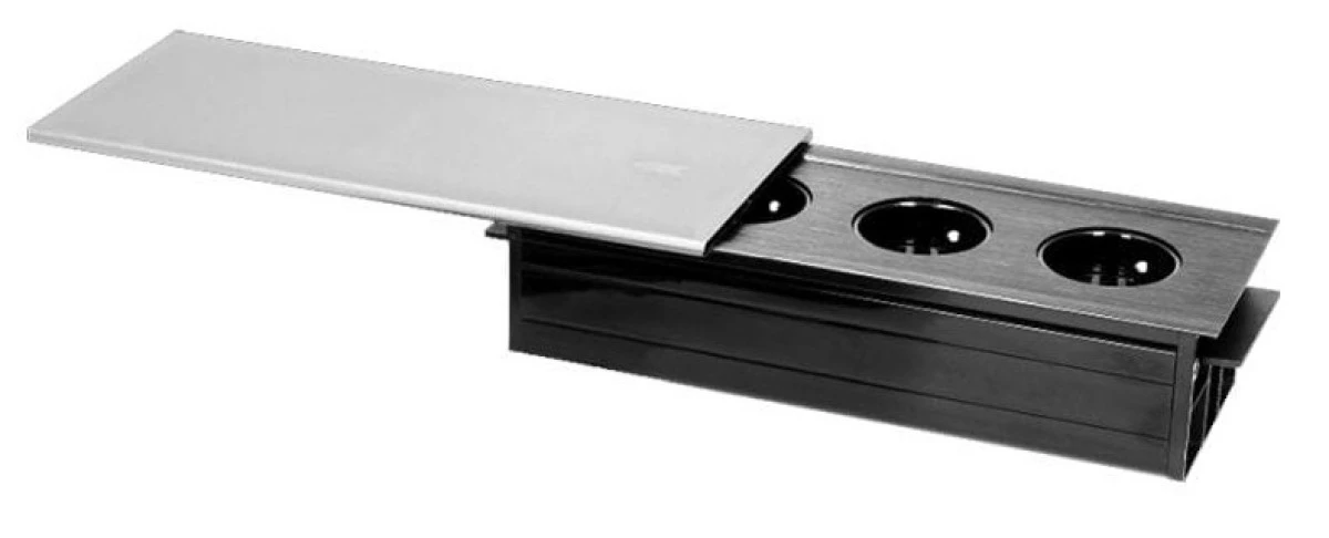 Gniazdo meblowe wpuszczane w blat 3x2P+Z z przesuwną pokrywką,OR-GM-9007/B-G