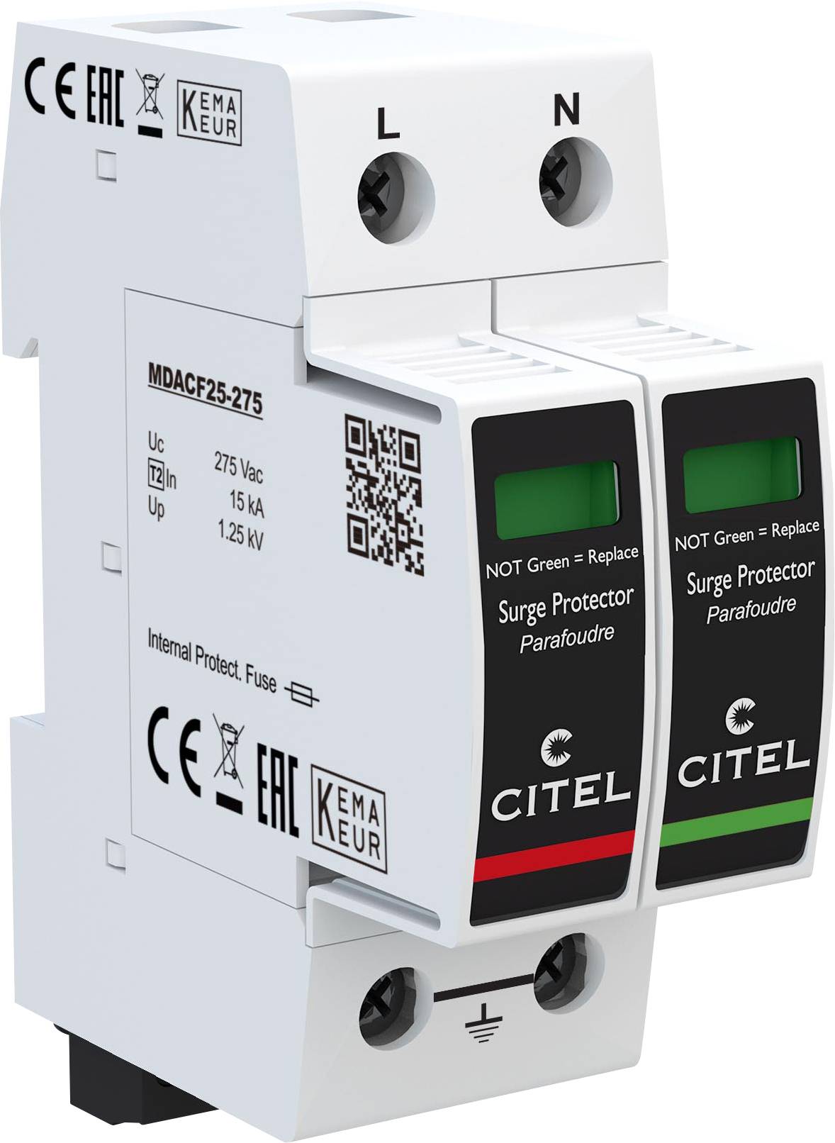 12. Ochronnik przeciwprzepięciowy modularny 275 V AC Montaż wpuszczany Dehn Ogranicznik przepięć typu 2 20kA 705.11