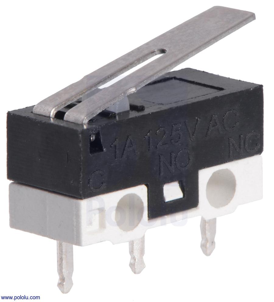Pololu Mini Snap-Action Switch with 13.5mm Lever: 3-Pin, SPDT, 1A
