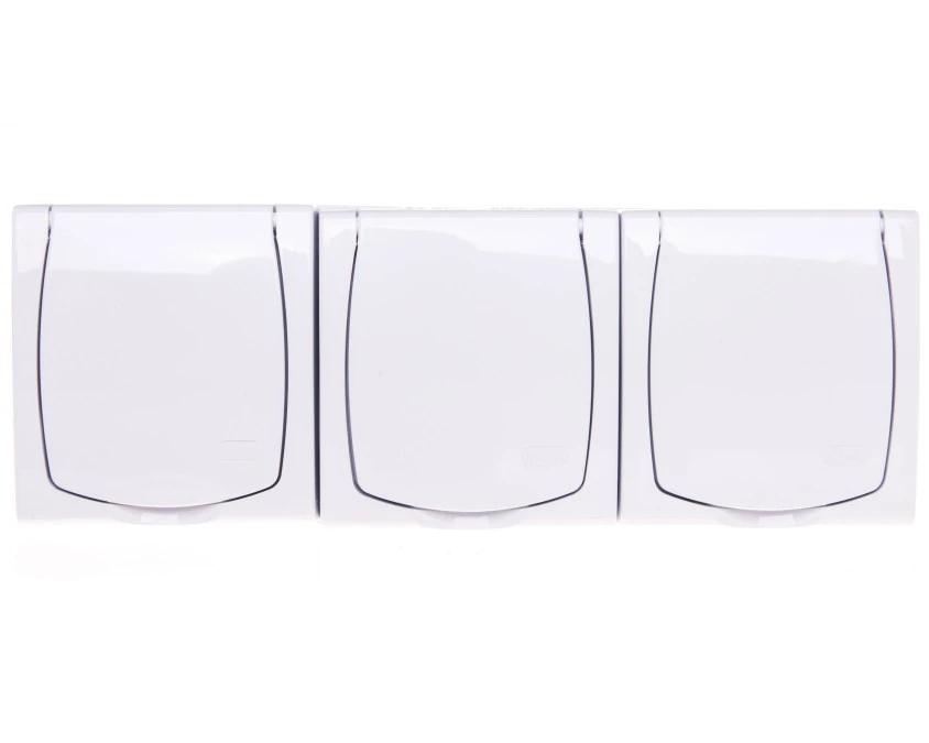 2. MADERA Gniazdo hermetyczne potrójne z/u IP44 z przesłonami klapka biała GNH-3NZP/00/w 50.82