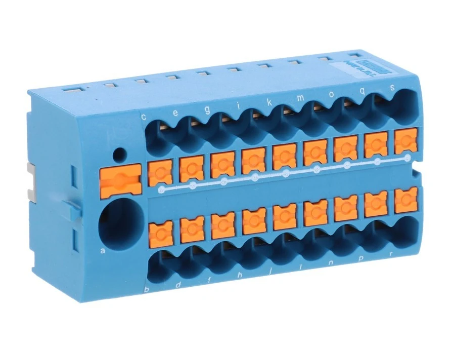 1. Blok rozdzielczy PTFIX 6/18X2,5 BU, niebieskie złącze przemysłowe - 18 punktów przyłączeniowych o przekroju 2,5mm2 36.89