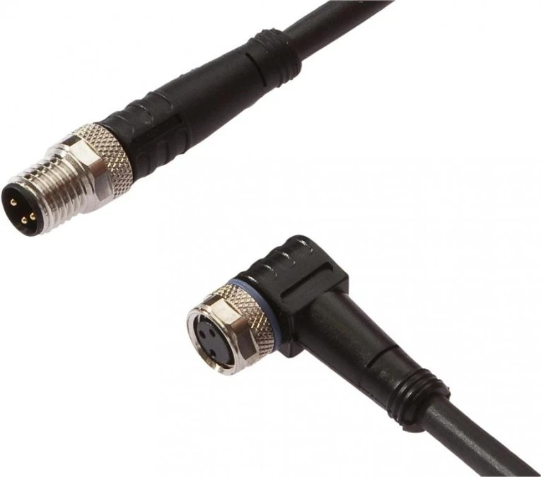 7. VK500F70, Kabel przyłączeniowy, 5m, M8 żeński 3pin kątowy, M8 męski 3pin prosty, 3x0,34mm², PUR, 60V, IP67 120.55