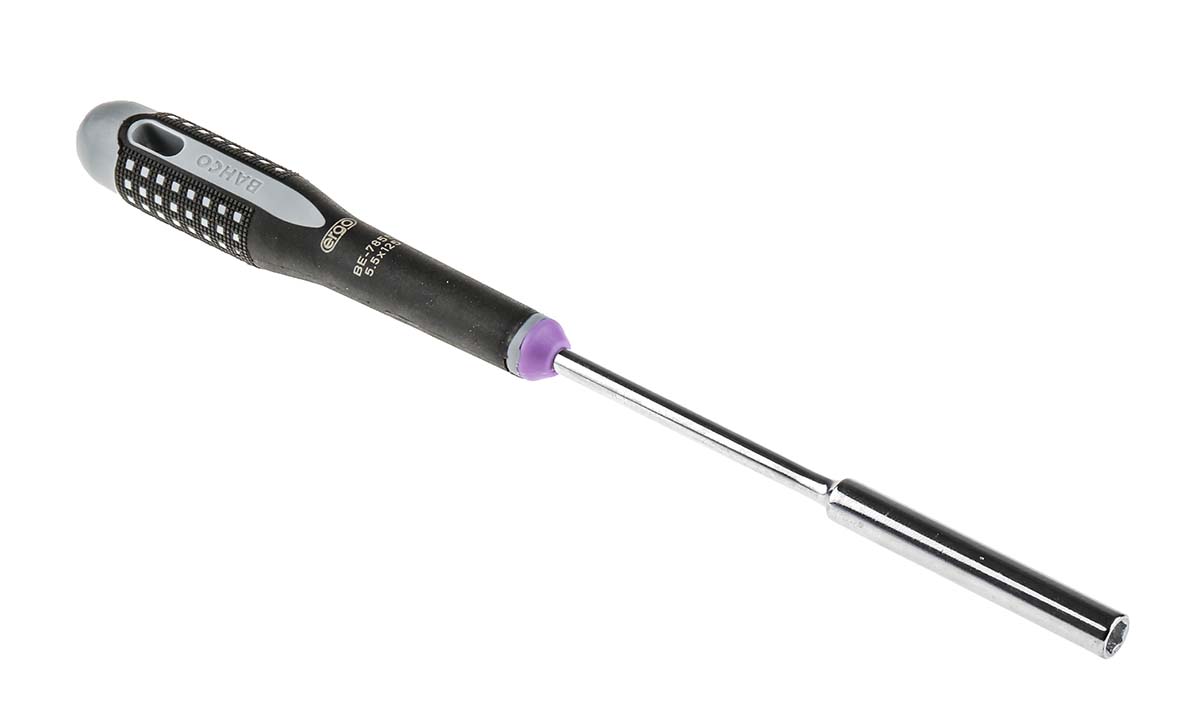 1. Wkrętak do nasadek, dł. ostrza: 225 mm, mat. łopatki: Stal stopowa, mat. uchwytu: Plastik, końcówka: Sześciokątna, 77.02