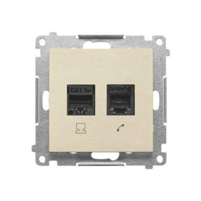 Simon 55 Gniazdo komputerowe RJ45 kategoria 5e + telefoniczne RJ12 (moduł) Szampański mat T5F.01/144