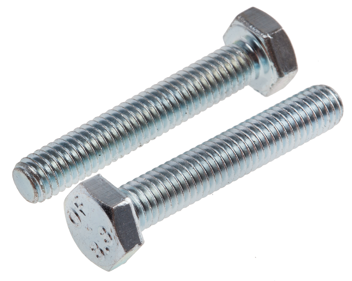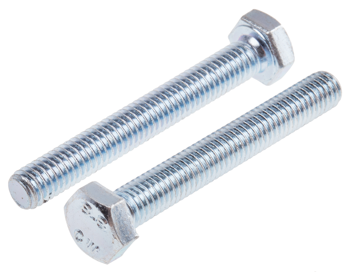 8. Śruba z łbem sześciokątnym gwint M6 45mm skok 1.0mm Stalowe Sześciokątny Powlekane jasnym cynkiem RS PRO 86.43