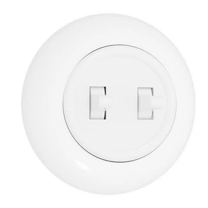 Włącznik podwójny schodowy z ramką RETROLINE biały ...
