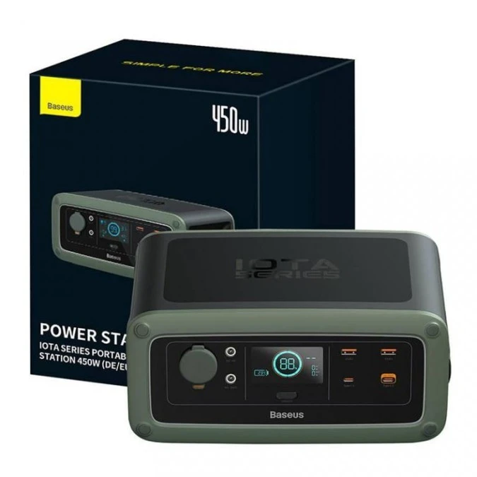 Stacja zasilająca Baseus ioTa 450W 288Wh 90000mAh, 2x USB-A, 2x USB-C, 2x DC, 2x AC, aplikacja Baseus, zielony