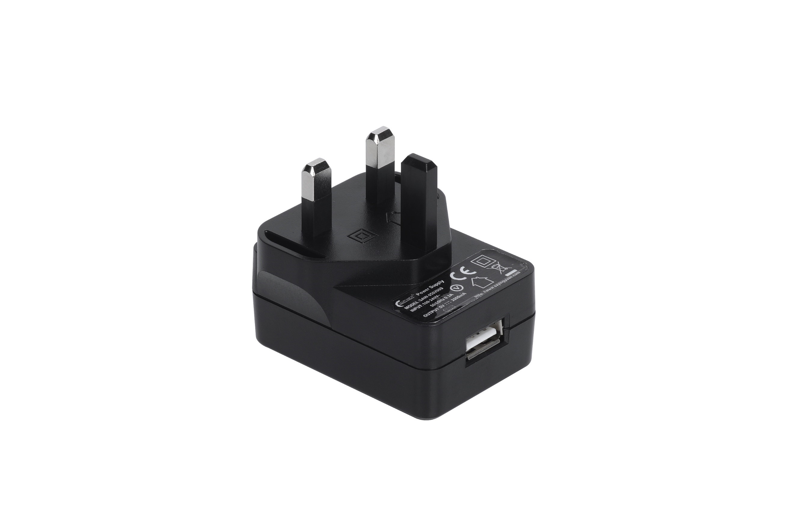 6. Adapter AC/DC Uwy 5V dc Iwy 1A Złącze 2,1 x 5,5 x 12 mm, biegun dodatni w środku 5W typ wtyczki: Typ G 48.92