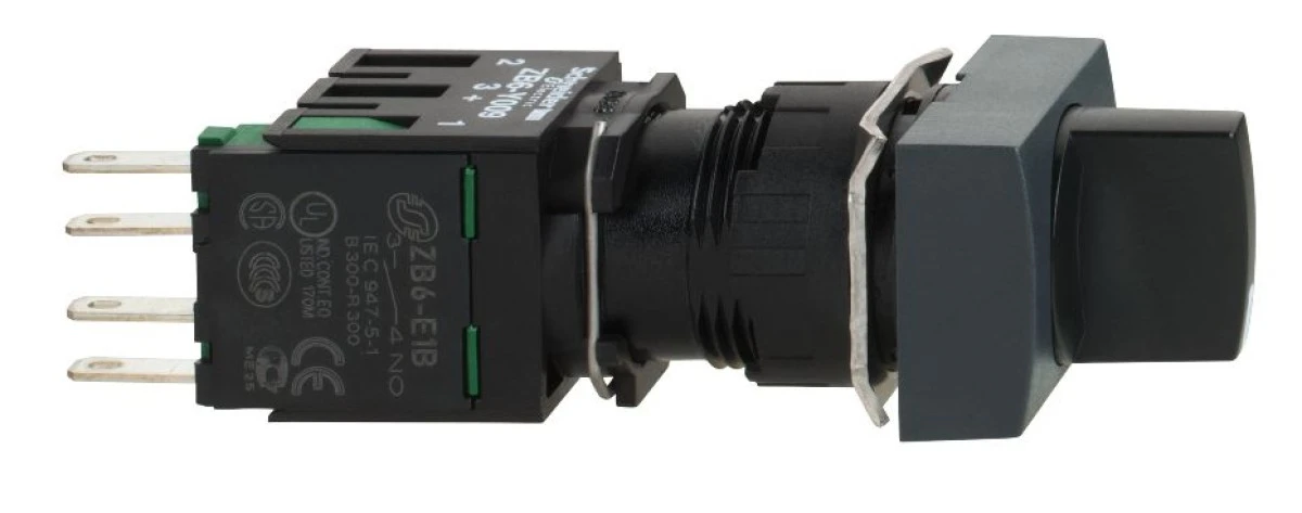 13. Przełącznik piórkowy czarny prostokąt., pokrętło O 16 2- poz. stab., 1 NO XB6DD221B 106.42